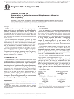 ASTM B629-77(2019) - Standard Practice for Preparation of Molybdenum and Molybdenum Alloys for Electroplating, published by ASTM International, establishes standardized procedures for preparing molybdenum and its alloys prior to electroplating. This practice focuses on methods using commonly available techniques, equipment, and chemicals in the electroplating industry, making it valuable for a wide range of engineering and manufacturing applications where reliable and protective coatings are required.