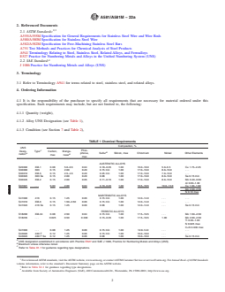 ABSTRACT This specification covers the standard for cold-finished wire and hot-finished free-machining stainless steel wire and wire rods in coils. Chemical analysis shall be performed on the steel and shall conform to the chemical composition requirements in carbon, manganese, phosphorus, sulfur, silicon, chromium, nickel and other trace elements. The stainless steel shall undergo mechanical testing and conform to the tensile strength requirement. SCOPE 1.1 This specification covers free-machining stainless steels of cold-finished wire and hot-finished wire rods in coils. Wire rods are a semi-finished product primarily for the manufacture of wire. Wire includes rounds, squares, hexagons, and special shapes in free-machining stainless steels designed especially for optimum machinability and for general corrosion and high-temperature service. 1.2 The following alloys are covered: 1.2.1 Austenitic alloys: UNS numbers S20300, S30300, S30310, S30323, and S30345; 1.2.2 Martensitic alloys: UNS numbers S41600, S41610, and S41623; and 1.2.3 Ferritic alloys: UNS numbers S18200, S18235, S41603, S43020, and S43023. Note 1: For wire other than for free-machining applications, see Specification A580/A580M. Note 2: For Free-Machining Stainless Steel Bars, see Specification A582/A582M. 1.3 The values stated in either inch-pound units or SI (metric) units are to be regarded separately as standard; within the text and tables, the SI units are shown in [brackets]. The values stated in each system are not exact equivalents; therefore, each system must be used independently of the other. Combining values from the two systems may result in nonconformance with the specification. 1.4 Unless the order specifies the applicable “M” specification designation, the material shall be furnished to the inch-pound units. 1.5 This international standard was developed in accordance with internationally recognized principles on standardization established in the Decision on Principles for the Development of International Standards, Guides and Recommendations issued by the World Trade Organization Technical Barriers to Trade (TBT) Committee.