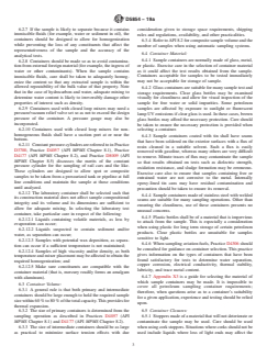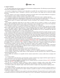 - Guidance on container material (glass, plastic, metal, stainless steel), configuration (reusable vs. disposable, cylindrical design), and volume considerations to minimize contamination and preserve sample composition.