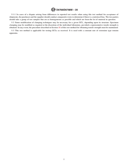 5.2 Some modification of clamping techniques may be necessary for a given GCL, depending upon its structure. Specimen clamping may be modified as required at the discretion of the individual laboratory, provided a representative tensile strength is obtained. In any event, the procedure described in Section 10 of this test method for obtaining tensile strength must be maintained.