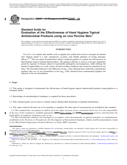 ASTM E2897-22 - Standard Guide for Evaluation of the Effectiveness of Hand Hygiene Topical Antimicrobial Products using <emph type="bdit">ex vivo</emph> Porcine Skin