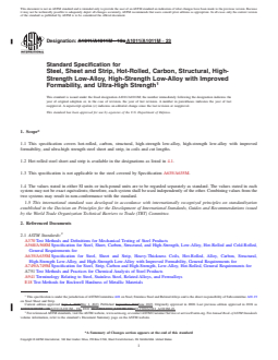 1.1 This specification covers hot-rolled, carbon, structural, high-strength low-alloy, high-strength low-alloy with improved formability, and ultra-high strength steel sheet and strip, in coils and cut lengths.