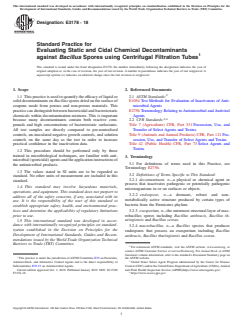 (Practice)Standard Practice for Evaluating Static and Cidal Chemical Decontaminants against Bacillus Spores using Centrifugal Filtration Tubes