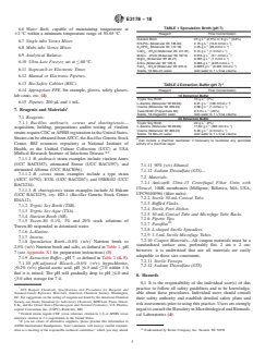ASTM E3178-18 is a standard published by ASTM International. Its full title is "Standard Practice for Evaluating Static and Cidal Chemical Decontaminants against <emph type="bdit">Bacillus</emph> Spores using Centrifugal Filtration Tubes". This standard covers: SIGNIFICANCE AND USE 5.1 The practice can be used to evaluate coupon materials of any composition, insofar as the coupon can be small enough to fit inside filter units mentioned in 4.1. 5.2 This practice defines procedures that are quantitative, scalable, rapid, sensitive, and safe, while minimizing labor and addressing statistical confidence (1, 2). 5.2.1 Quantitative—The total number of spores per coupon is determined by dilution-plating, and all spores remaining on the coupon are assayed for activity in the extraction tube to provide confidence that all the spores were accounted for. 5.2.2 Statistical Confidence—The use of five independent preparations of spore inocula for a statistical n of 5. 5.2.3 Sensitivity—Allows for complete detection of all culturable spores inoculated on a coupon, including the spores that remain attached to the coupon. 5.2.3.1 The limit of detection is dependent on the culturability of fully matured spores to germinate, outgrow and divide in the presence of the extraction medium (1% tryptic soy broth, 100 mM L-Alanine, 1 mM inosine, 0.05% Tween 80) and/or on tryptic soy agar. 5.2.3.2 Results presented in Refs (1, 3) (and currently unpublished results) indicate that these media, combined with the test temperatures and conditions described herein will generate results with a high level of practical confidence for detecting culturable Bacillus spores. 5.2.4 Safety—Inoculated coupons are contained within filter units. 5.2.5 Simplicity of Testing—Tests and extractions are performed in the same filter unit to minimize coupon handling steps. 5.2.6 Scalable and Rapid—A maximum of 36 samples can be processed in 1 h by two technicians; a total of 300 samples have been processed by six technicians in 5 h (1, 2). 5.2.7 Wide application for numerous Bacillus species and strains. The method has also been modified and used for vegetative bacteria and viruses as well (1, 2). SCOPE 1.1 This practice is used to quantify the efficacy of liquid or solid decontaminants on Bacillus spores dried on the surface of coupons made from porous and non-porous materials. This practice can distinguish between bactericidal and bacteriostatic chemicals within decontamination mixtures. This is important because many decontaminants contain both reactive compounds and high concentrations of bacteriostatic surfactants. All test samples are directly compared to pre-neutralized controls, un-inoculated negative growth controls, and solution controls on the same day as the test in order to increase practical confidence in the inactivation data. 1.2 This procedure should be performed only by those trained in microbiological techniques, are familiar with antimicrobial (sporicidal) agents and the application instructions of the antimicrobial products. 1.3 The values stated in SI units are to be regarded as standard. No other units of measurement are included in this standard. 1.4 This standard may involve hazardous materials, operations, and equipment. This standard does not purport to address all of the safety concerns, if any, associated with its use. It is the responsibility of the user of this standard to establish appropriate safety, health, and environmental practices and determine the applicability of regulatory limitations prior to use. 1.5 This international standard was developed in accordance with internationally recognized principles on standardization established in the Decision on Principles for the Development of International Standards, Guides and Recommendations issued by the World Trade Organization Technical Barriers to Trade (TBT) Committee.