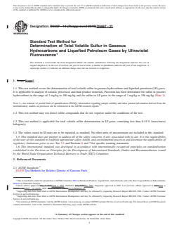 REDLINE ASTM D6667-21 - Standard Test Method for Determination of Total Volatile Sulfur in Gaseous Hydrocarbons and Liquefied Petroleum Gases by Ultraviolet Fluorescence
