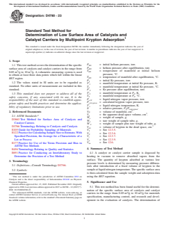 ASTM D4780-23 - Standard Test Method for Determination of Low Surface Area of Catalysts and Catalyst Carriers by Multipoint Krypton Adsorption