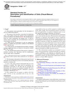 - Scope and Application: ASTM D2488-17e1 outlines procedures for describing and identifying natural soil samples (both intact and disturbed) based on visual observation and simple manual tests. It applies to soil particles smaller than 3 inches and can be used in the field, laboratory, or other locations.
