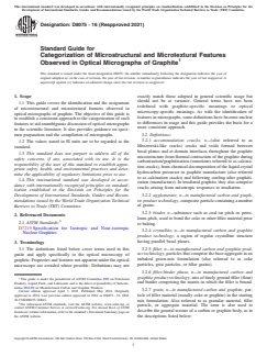 ASTM D8075-16(2021) - Standard Guide for Categorization of Microstructural and Microtextural Features Observed in Optical Micrographs of Graphite