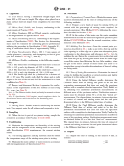The standard specifies the requirements for the Gillmore initial and final needles, including tip diameter and mass, to ensure accurate results. - Test Methodology: