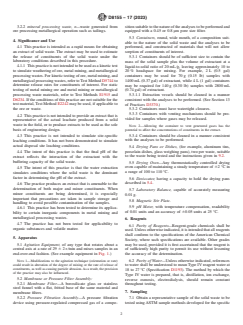 1.1 This practice covers a procedure for leaching of solid waste to obtain an aqueous solution to be used to determine the constituents leached under the specified testing conditions.