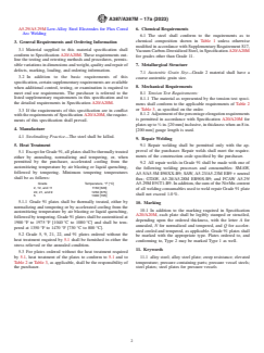 ABSTRACT This specification covers chromium-molybdenum alloy steel plates for welded broilers and pressure vessels designed for elevated temperature service. Materials considered under this specification are available in grades 2, 12, 11, 22, 22L, 21, 21L, 5, 9 and 91. The steel materials shall be killed and shall be thermally treated. The steel specimens shall undergo heat analysis and product analysis and shall conform to the chemical requirements for carbon, manganese, phosphorus, sulfur, silicon, chromium, molybdenum, nickel, vanadium, columbium, boron, nitrogen, aluminum, titanium, and zirconium. The steel specimens shall also undergo tension tests and shall conform to the required values of tensile strength, yield strength, and elongation. SCOPE 1.1 This specification2 covers chromium-molybdenum alloy steel plates intended primarily for welded boilers and pressure vessels designed for elevated temperature service. 1.2 Plates are available under this specification in several grades having different alloy contents as follows: Nominal Nominal Chromium Molybdenum Grade Content, % Content, % 2 0.50 0.50 12 1.00 0.50 11 1.25 0.50 22 2.25 1.00 21 3.00 1.00 5 5.00 0.50 9 9.00 1.00 91 9.00 1.00 1.3 Each grade except Grade 91 is available in two classes of tensile strength levels as defined in the Tensile Requirements tables. Grade 91 is available only as Class 2. Grade 91 consists of two types, with Type 2 differentiated from Type 1 by requiring restricted composition for the enhancement of creep resistance. Note 1: Grade 911, previously covered by this specification, is now covered by Specification A1017/A1017M. 1.4 The maximum thickness of plates is limited only by the capacity of the composition to meet the specified mechanical property requirements. 1.5 The values stated in either inch-pound units or SI units are to be regarded separately as standard. Within the text, the SI units are shown in brackets. The values stated in each system are not exact equivalents. Therefore, each system must be used independently of the other. Combining values from the two systems may result in nonconformance with this specification. 1.6 This international standard was developed in accordance with internationally recognized principles on standardization established in the Decision on Principles for the Development of International Standards, Guides and Recommendations issued by the World Trade Organization Technical Barriers to Trade (TBT) Committee.