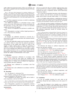 ASTM E2008-17(2021) is a standard published by ASTM International. Its full title is "Standard Test Methods for Volatility Rate by Thermogravimetry". This standard covers: SIGNIFICANCE AND USE 5.1 Volatility of a material is not an equilibrium thermodynamic property but is a characteristic of a material related to a thermodynamic property that is vapor pressure. It is influenced by such factors as surface area, temperature, particle size, and purge gas flow rate; that is, it is diffusion controlled. 5.2 The extent of containment achieved for specimens in these test methods by means of a pinhole opening between 0.33 mm to 0.38 mm allows for measurement circumstances that are relatively insensitive to experimental variables other than temperature. Decreasing the extent of containment by use of pinholes larger than 0.38 mm will increase the magnitude of the observed rate of mass loss but will also reduce the measurement precision by increasing the sensitivity to variations in other experimental variables. 5.3 Results obtained by these test methods are not strictly equivalent to those experienced in processing or handling conditions but may be used to rank materials for their volatility in such circumstances. Therefore, the volatility rates determined by these test methods should be considered as index values only. 5.4 The volatility rate may be used to estimate such quantifiable values as drying interval or the extent of volatile release from a process. SCOPE 1.1 These test methods cover procedures for assessing the volatility of solids and liquids at given temperatures using thermogravimetry under prescribed experimental conditions. Results of these test methods are obtained as volatility rates expressed as mass per unit time. Rates ≥5 μg/min are achievable with these test methods. 1.2 Temperatures typical for these test methods are within the range from 25 °C to 500 °C. This temperature range may differ depending upon the instrumentation used. 1.3 These test methods are intended to provide a value for the volatility rate of a sample using a thermogravimetric analysis measurement on a single representative specimen. It is the responsibility of the user of these test methods to determine the need for and the number of repetitive measurements on fresh specimens necessary to satisfy end use requirements. 1.4 The values stated in SI units are to be regarded as standard. No other units of measurement are included in this standard. 1.5 This standard does not purport to address all of the safety concerns, if any, associated with its use. It is the responsibility of the user of this standard to establish appropriate safety, health, and environmental practices and determine the applicability of regulatory limitations prior to use. 1.6 This international standard was developed in accordance with internationally recognized principles on standardization established in the Decision on Principles for the Development of International Standards, Guides and Recommendations issued by the World Trade Organization Technical Barriers to Trade (TBT) Committee.
