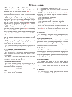 - Material Requirements: Specifies materials and manufacturing processes for rollers, rings, and cages, including allowance for recycled material if compliance is maintained.