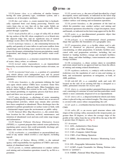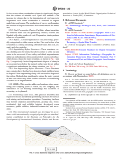 SIGNIFICANCE AND USE 4.1 This practice addresses coal mining geospatial data in general and is significant to the coal mining community because it provides uniformity of geospatial data pertaining to coal mining features. 4.2 Some RA data for coal mining feature attributes may not have values. Those RAs may not collect those attributes as part of their regulatory program or those attributes may not be applicable within their area of responsibility. As a result, a national dataset of coal mining features may appear to be incomplete for those RAs. 4.3 Within its area of exclusive jurisdiction, each RA is the ADS for the coal mining geospatial data that it creates and uses to regulate mining activity. 4.4 Limitations of Use—Uses of a national dataset are limited by several factors affecting the completeness, currency, and accuracy, of various data sources. 4.4.1 Completeness—Participation in the compilation of spatial data may not be uniform across RAs, which may affect completeness, both in terms of spatial data, and associated attributes. For some RAs, this standard may not be applicable because features described herein do not occur within their area of responsibility. 4.4.2 Currency—Source data is subject to change as a result of regulatory actions that may change the geographical location, extent, or attributes of particular features which may not be reflected in the national dataset. If detailed information is needed for individual features, the appropriate RA should be contacted for additional information. 4.4.3 Data compiled in accordance with this standard is not intended to be used as a primary source for evaluating risk or safety. 4.4.4 Data compiled in accordance with this standard is intended for informative purposes; it is not authoritative. SCOPE 1.1 This practice defines a set of terms, procedures, and data required to define the accurate location and description of the minimum geospatial data for surface coal mining operations (CMO), underground coal mining extents, land reclamation and performance bond statuses, lands unsuitable for mining petitions (LUMP) and designated areas, coal spoil and refuse features, coal preparation plants, environmental resource monitoring locations (ERMLs), and postmining land uses. 1.2 Units—The values stated in inch-pound units are to be regarded as standard. No other units of measurement are included in this standard. 1.3 This standard does not purport to address all of the safety concerns, if any, associated with its use. It is the responsibility of the user of this standard to establish appropriate safety and health practices and determine the applicability of regulator limitations prior to use. 1.3.1 This practice offers a set of instructions for performing one or more specific operations. This document cannot replace education or experience and should be used in conjunction with professional judgment. Not all aspects of this practice may be applicable in all circumstances. This ASTM standard is not intended to represent or replace the adequacy of a professional service, nor should this document be applied without consideration of a project’s many unique aspects. The word “Standard” in the title of this document means only that the document has been approved through the ASTM consensus process. 1.4 Surface CMOs—As used in this practice, a surface CMO represents an area where coal removal, reclamation, and related supporting activities have occurred, is occurring, is pending authorization or is authorized by the Regulatory Authority (RA) within a defined surface CMO or any other unpermitted area that has been identified by the RA. 1.4.1 This practice addresses coal mining geospatial data, interim permits, and permanent program permits. Each RA shall be the authoritative data source (ADS) for coal mining geospatial data. 1.5 Underground Coal Mining Extents—This practice addresses underground coal mining extents that represent a...