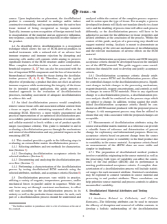 SIGNIFICANCE AND USE 4.1 Decellularization is used in the preparation of medical products that make use of the native structure and/or composition of the extracellular matrix derived from a specific tissue source. Upon implantation or placement, the decellullarized product is commonly intended to undergo and/or induce constructive remodeling and incorporation into the native host tissue instead of being recognized as foreign material. Typically, immune system recognition of foreign material leads to encapsulation of the material and an aggressive inflammatory response, causing the ultimate rejection or other failure of the product. 4.2 As described above, decellularization is a recognized technique which allows the use of ECM-derived products in medical treatments with a reduced risk of an adverse host immune response and immune rejection by disrupting and removing cells and/or cell contents while aiming to preserve significant features of the ECM structure and/or composition. More complete decellularization is often associated with a beneficial response (1, 2)6 but can also be associated with the loss of important ECM components and the loss of structural or biomechanical integrity from the tissue during the decellularization process (3, 4, 5, 6). Therefore, given the typical objective of producing a product that does not elicit an adverse immune response while maintaining the integrity of the tissue for its intended surgical application, this guide presents a standard approach to the evaluation of decellularization processes, including assessment of adequate decellularization to achieve this end. 4.3 An ideal decellularization process would completely remove source tissue cells and associated cellular content from a tissue or organ, while minimizing unwanted effects on the remaining ECM. However, a more widely encountered and practical representation of an optimized decellularization process exhibits partial removal and/or disruption of resident cells and cellular material to le... SCOPE 1.1 This document provides guidance on the characterization and evaluation of the decellularization processes used to produce decellularized extracellular matrix (dECM) materials which will be used as medical products in direct or indirect contact with the body. The decellularization process may be performed on tissue from human or other mammalian sources or produced in vitro from human or other mammalian cells. The dECM may or may not be recellularized prior to use. Decellularized ECM material derived from non-mammalian tissue or cells and decellularized ECM material used for non-medical purposes may follow the framework provided but may require additional considerations outside the scope of this document. 1.2 Biological tissues are composed of a structural extracellular matrix (ECM) and embedded cells. The intent of a decellularization process is to disrupt and/or remove cells and cellular components from an ECM material while maintaining key structural and/or compositional properties of the material. Decellularization comprises process steps intended or expected to result or aid in the disruption of source tissue cells and/or removal of cellular content from the material undergoing decellularization. Actions that are intended to rinse or otherwise remove decellularization reagents or by-products should also be considered in that context as part of the decellularization process. Purifications or other isolations of specific ECM components are not considered decellularization and are outside the scope of this document. 1.3 This document describes relevant parameters of decellularization processes used to prepare extracellular matrix materials as medical products. 1.4 This document provides guidance on the measurement of specific and general properties of dECM. This includes both the analysis of cellular material as well as the assessment of the effects of decellularization on dECM properties such as composition...
