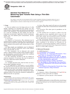 ASTM E459-22, "Standard Test Method for Measuring Heat Transfer Rate Using a Thin-Skin Calorimeter," provides a standardized approach for determining net heat transfer rates on metallic or coated metallic surfaces. Developed by ASTM International, this test method utilizes a thin metallic calorimeter equipped with thermocouples to measure surface temperatures and apply a one-dimensional heat flow analysis. The method is crucial in industries where understanding thermal loads and heat flux is essential for safety, performance, and quality control.