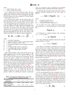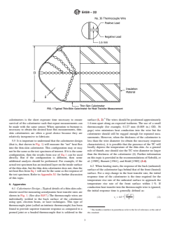 5.3 In 6.6 and 6.7, it is demonstrated that lateral heat conduction effects on a local measurement can be minimized by using a calorimeter material with a low thermal conductivity. Alternatively, a distribution of the heat transfer rate may be obtained by placing a number of thermocouples along the back surface of the calorimeter.