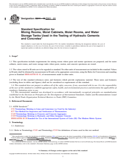 REDLINE ASTM C511-21 - Standard Specification for Mixing Rooms, Moist Cabinets, Moist Rooms, and Water Storage Tanks Used in the Testing of Hydraulic Cements and Concretes