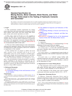 ASTM C511-21 - Standard Specification for Mixing Rooms, Moist Cabinets, Moist Rooms, and Water Storage Tanks Used in the Testing of Hydraulic Cements and Concretes