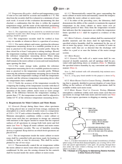 ABSTRACT This specification includes the requirements for mixing rooms where paste and mortar specimens are prepared and for moist cabinets, moist rooms, and water storage tanks where paste, mortar, and concrete specimens are stored; intended for use in the testing of hydraulic cements and concretes. The system shall be equipped with a temperature recorder and a reference temperature measuring device that are to be placed practically near to each other. The air and mixing water temperatures and the relative humidity in the cement mixing room shall be maintained at specific values. Moist cabinets and moist rooms shall be constructed of durable materials with tight-fitting doors or windows for all openings. Air in moist cabinet or moist room shall be saturated with moisture in order to provide specified storage conditions and air temperature shall be controlled with provisions made for heating, cooling, or both. The specified relative humidity in these systems shall be maintained by the use of one or more fog sprays, water sprays, or curtains of water on the inner walls. Water storage tanks shall be constructed of non-corroding materials with provisions for automatic control of water temperature. The water in a storage tank shall be saturated with calcium hydroxide to prevent leaching. SCOPE 1.1 This specification includes requirements for mixing rooms where paste and mortar specimens are prepared; and for moist cabinets, moist rooms, and water storage tanks where paste, mortar, and concrete specimens are stored. 1.2 The values stated in SI units are to be regarded as standard. No other units of measurement are included in this standard. Values in SI units shall be obtained by measurement in SI units or by appropriate conversion, using the Rules for Conversion and rounding given in Standard IEEE/ASTM SI 10, of measurements made in other units. 1.3 The text of this standard references notes and footnotes which provide explanatory material. These notes and footnotes (excluding those in tables and figures) shall not be considered as requirements of this standard. 1.4 This standard does not purport to address all of the safety concerns, if any, associated with its use. It is the responsibility of the user of this standard to establish appropriate safety, health, and environmental practices and determine the applicability of regulatory limitations prior to use. 1.5 This international standard was developed in accordance with internationally recognized principles on standardization established in the Decision on Principles for the Development of International Standards, Guides and Recommendations issued by the World Trade Organization Technical Barriers to Trade (TBT) Committee.