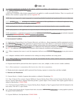 - Environmental Conditions: Defines acceptable humidity, temperature, and moisture provisions for board storage, application, and curing.