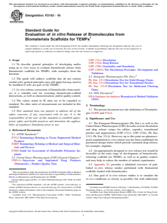 ASTM F3142-16 - Standard Guide for Evaluation of <emph type="bdit">in vitro</emph> Release of Biomolecules from Biomaterials Scaffolds for TEMPs