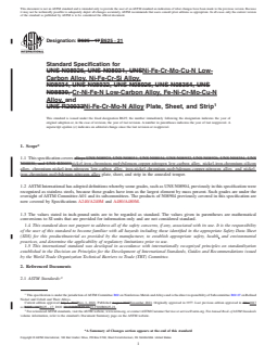 REDLINE ASTM B625-21 - Standard Specification for Ni-Fe-Cr-Mo-Cu-N Low-Carbon Alloy, Ni-Fe-Cr-Si Alloy, <brk />Cr-Ni-Fe-N Low-Carbon Alloy, Fe-Ni-Cr-Mo-Cu-N Alloy, and <brk/>Ni-Fe-Cr-Mo-N Alloy Plate, Sheet, and Strip