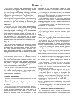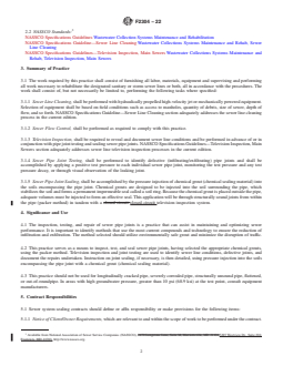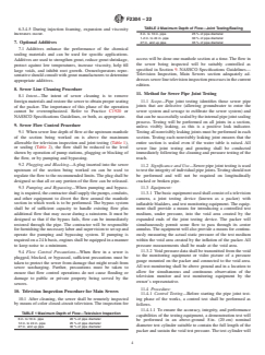 • Inspection and Testing: The standard details the use of closed-circuit television (CCTV) for identifying defective pipe joints and documenting repair needs. It includes guidelines for pressure testing sewer joints to detect infiltration or exfiltration.