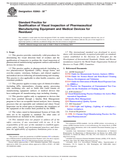 ASTM E3263-22e1 - Standard Practice for Qualification of Visual Inspection of Pharmaceutical Manufacturing Equipment and Medical Devices for Residues
