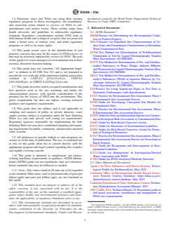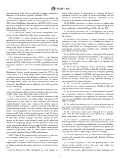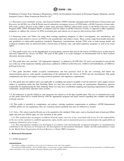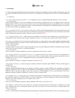 ASTM E3358-23a is a guide published by ASTM International. Its full title is "Standard Guide for Per- and Polyfluoroalkyl Substances Site Screening and Initial Characterization". This standard covers: SIGNIFICANCE AND USE 4.1 PFAS are widely used in commercial and industrial applications worldwide (see Fig. 1). PFAS are of concern due to their documented persistence and their studied impacts on human health and the environmental. While there is no comprehensive source of information on the many individual PFAS substances and their functions in different applications, a range of resources are available to the practitioner. This guide provides information to assist the practitioner in navigating these challenges during the initial screening and site characterization process. FIG. 1 Activity/Industry that may be Sources of PFAS Use and Release Source: AEI Consultants 4.2 The user should note that PFAS regulatory management framework at the federal and state level are evolving quickly. Therefore, consultation with legal and technical representatives with knowledge of federal, state, and local PFAS regulations is advised prior to use of this guide. Environmental audit policies or privileges may be applicable to some of the steps described in this guide (see EPA, 2000). 4.3 Multi-step Risk Management Framework: 4.3.1 The actions described in this guide are intended to provide a multi-step risk management framework to confirm, with reasonable certainty, that PFAS may have been used at a federally-owned, publicly-owned, or privately-owned property. This standard provides guidance on how to focus limited resources on using a multi-step process, illustrated in Fig. 2, to identify property potentially impacted by on-site or off-site uses and releases of PFAS. Section 4.5 describes the use and occurrence of PFAS. Section 4.6 describes activities at government and federal installations where PFAS use is expected. Section 4.7 broadly outlines the industry sectors where the use of PFAS has been documented (Glüge, 2020 (2), Gaines, 2022 (3)). FIG. 2 Initial Site Screening and Characterization Flow Diagram 4.4 PFAs History and Use: 4.4.1 In the 1940s, industrial processes to co... SCOPE 1.1 Per- and polyfluoroalkyl substances (PFAS) are a group of over 7,000 manmade compounds consisting of polymeric chains of carbon bonded to fluorine atoms, usually with a polar functional group at the head. This guide recognizes that PFAS can be categorized as polymeric or nonpolymeric, collectively amounting to more than 4,700 Chemical Abstracts Service (CAS)-registered substances. Environmental concerns pertaining to PFAS are centered primarily on the perfluoroalkyl acids (PFAA), a subclass of per-and polyfluoroalkyl substances, which display extreme persistence and chain-length dependent bioaccumulation and adverse effects in biota. 1.2 The regulatory framework for PFAS continues to evolve, both domestically and internationally. The United States Environmental Protection Agency (EPA) is proceeding with a wide-ranging set of PFAS regulatory actions (EPA, 2021). While the Comprehensive Environmental Response, Compensation, and Liability Act (CERCLA) does not currently recognize PFAS as hazardous substances, the statute does require actions to protect public health and the environment from contaminants and pollutants released to the environment. Other federal regulatory programs, such as the Safe Drinking Water Act are being used to address drinking water supplies adversely impacted by releases of PFAS. The Clean Water Act’s National Pollutant Discharge Elimination System (NPDES) permitting program is tool that both federal and state regulators are using to regulate the inflows of PFAS-impacted wastewaters at both publicly-owned treatment works (POTW) and federally-owned wastewater treatment plants and the concentration of PFAS in permitted effluent. EPA continues to add additional per-and polyfluoroalkyl substances to the list of substances reportable under the federal Toxic Release Inventory (TRI) reporting program. International efforts to address per-and polyfluoroalkyl substances include Australia’s PFAS Nation...