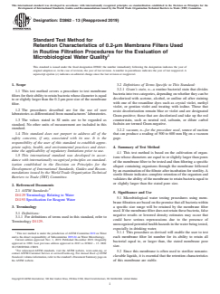 ASTM D3862-13(2019) - Standard Test Method for Retention Characteristics of 0.2-µm Membrane Filters Used in Routine Filtration Procedures for the Evaluation of Microbiological Water Quality