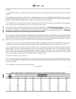 7.3.1 Application of Air Pressure and Water Flow—Adjust the water flow rate to 3.4 gal/ft /h (138 L/m /h) times the area of the