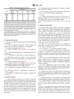 • Outlines impurity limits and stipulates analysis and reporting requirements for additional elements if present in substantial concentration.