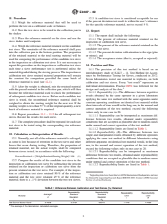 11.4 Weigh the reference material retained on the candidate test sieve. The remainder of the reference material shall pass into the