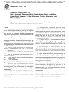 Keywords: ASTM F3148-17a, high strength structural bolts, steel bolt assemblies, 144ksi tensile strength, alloy steel fasteners, torque and angle installation, weathering steel bolts, structural connections, bolt testing, construction fasteners.