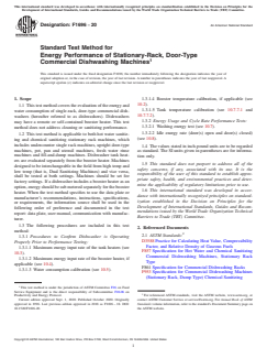 ASTM F1696-20: Standard Test Method for Energy Performance of Stationary-Rack, Door-Type Commercial Dishwashing Machines establishes standardized procedures for evaluating the energy and water consumption of commercial dishwashers with stationary racks and door-type configurations. This standard is maintained by ASTM Committee F26 on Food Service Equipment and is applicable to both hot water sanitizing and chemical sanitizing machines, including undercounter, upright, pot, pan, and utensil models.