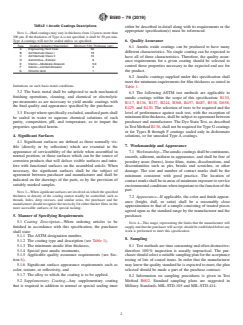 ASTM B580-79(2019) is a technical specification published by ASTM International. Its full title is "Standard Specification for Anodic Oxide Coatings on Aluminum". This standard covers: ABSTRACT This specification covers the requirements for porous oxide coatings deposited by electrolysis on aluminum and aluminum alloy parts. These coatings should have good appearance, abrasion resistance, electrical properties, and protection against corrosion and does not include nonporous barrier layer anodic coatings that are used for electrical capacitors. The basis metals for these coatings should be subjected to mechanical finishing operations, cleaning, and chemical or electrolytic pre-treatments to yield coatings with fine quality and appearance. Anodized parts should be sealed in water or aqueous chemical solutions except when otherwise specified. Each anodic coating should be continuous, smooth, adherent, uniform in appearance, and free of powdery areas (burns, loose films, stains, discolorations, and discontinuities. SCOPE 1.1 This specification covers requirements for electrolytically formed porous oxide coatings on aluminum and aluminum alloy parts in which appearance, abrasion resistance, electrical properties, and protection against corrosion are important. Nonporous, barrier layer anodic coatings used for electrical capacitors are not covered. Seven types of coatings as shown in Table 1 are provided. Definitions and typical examples of service conditions are provided in Appendix X1. Note 1: It is recognized that uses exist in which modifications of the coatings covered by this specification may be required. In such cases the particular properties desired by the purchaser should be the subject of agreement between the purchaser and the manufacturer. 1.2 The values stated in SI units are to be regarded as standard. No other units of measurement are included in this standard. 1.3 This international standard was developed in accordance with internationally recognized principles on standardization established in the Decision on Principles for the Development of International Standards, Guides and Recommendations issued by the World Trade Organization Technical Barriers to Trade (TBT) Committee.