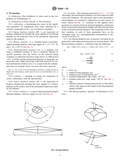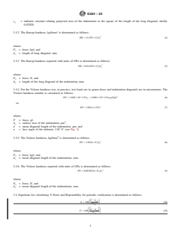 • Equipment and Calibration: The standard details requirements for test machines, indenters, optical measurement devices, and references calibration standards, including the need for proper machine and indenter verification as per ASTM E92.