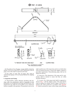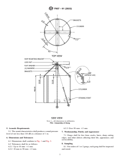 ABSTRACT This specification covers gongs for use on ships of certain length, as required by International Regulations. The gong cylinder, brackets, clapper rod, "U" bracket, washers, and clapper support pin shall be made of stainless steel. The clapper mass shall be made of cast alloy steel. In addition, the support bolt, nut, flat washer, and cotter pins shall be made of stainless steel compatible with the other materials. The general arrangement of the assembled gong, as well as details of the gong cylinder, brackets, clapper, and miscellaneous fittings are presented. The sound characteristics of these gongs shall be determined by an acoustic test. These gongs shall be free from cracks, burrs, sharp cutting edges, and other defects affecting their life, appearance, and serviceability. SCOPE 1.1 This specification covers gongs for use on ships 100 m or more in length, as required by International Regulations (see Appendix X1). 1.2 For consistency with International Regulations, all measurements are in SI units. 1.3 The values stated in SI units are to be regarded as standard. No other units of measurement are included in this standard. 1.4 This international standard was developed in accordance with internationally recognized principles on standardization established in the Decision on Principles for the Development of International Standards, Guides and Recommendations issued by the World Trade Organization Technical Barriers to Trade (TBT) Committee.