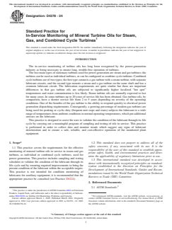 ASTM D4378-24 - Standard Practice for In-Service Monitoring of Mineral Turbine Oils for Steam, Gas, and Combined Cycle Turbines