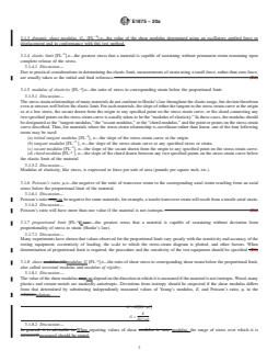 ASTM E1875-20a is a standard published by ASTM International. Its full title is "Standard Test Method for Dynamic Young's Modulus, Shear Modulus, and Poisson's Ratio by Sonic Resonance". This standard covers: SIGNIFICANCE AND USE 5.1 This test method has advantages in certain respects over the use of static loading systems for measuring moduli. 5.1.1 This test method is nondestructive in nature. Only minute stresses are applied to the specimen, thus minimizing the possibility of fracture. 5.1.2 The period of time during which measurement stress is applied and removed is of the order of hundreds of microseconds. With this test method it is feasible to perform measurements at elevated temperatures, where delayed elastic and creep effects would invalidate modulus of elasticity measurements calculated from static loading. 5.2 This test method is suitable for detecting whether a material meets the specifications, if cognizance is given to one important fact in materials are often sensitive to thermal history. Therefore, the thermal history of a test specimen must be considered in comparing experimental values of moduli to reference or standard values. Specimen descriptions should include any specific thermal treatments that the specimens have received. SCOPE 1.1 This test method covers the determination of the dynamic elastic properties of elastic materials. Specimens of these materials possess specific mechanical resonant frequencies that are determined by the modulus of elasticity, mass, and geometry of the test specimen. Therefore, the dynamic elastic properties of a material can be computed if the geometry, mass, and mechanical resonant frequencies of a suitable test specimen of that material can be measured. The dynamic Young's modulus is determined using the fundamental flexural resonant frequency. The dynamic shear modulus, or modulus of rigidity, is found using the fundamental torsional resonant frequency. Dynamic Young's modulus and dynamic shear modulus are used to compute Poisson's ratio. 1.2 This test method is specifically appropriate for materials that are elastic, homogeneous, and isotropic (1).2 1.3 Materials of a composite character (particulate, whisker, or fiber reinforced) may be tested by this test method with the understanding that the character (volume fraction, size, morphology, distribution, orientation, elastic properties, and interfacial bonding) of the reinforcement in the test specimen will have a direct effect on the elastic properties. These reinforcement effects shall be considered in interpreting the test results for composites. 1.4 This test method shall not be used for determination of Poisson’s ratio of anisotropic materials. Note 1: For anisotropic materials, Poisson’s ratio can have different values in different directions. Due to the lack of symmetry in anisotropic materials, the elasticity tensor cannot be reduced to only two independent numbers, and the simplified relation between E, G, and µ is not valid. 1.5 This test method should not be used for specimens that have cracks or voids that are major discontinuities in the specimen. 1.6 The test method should not be used when materials cannot be fabricated in a uniform rectangular or circular cross section. 1.7 An elevated-temperature furnace and cryogenic chamber are described for measuring the dynamic elastic moduli as a function of temperature from –195 °C to 1200 °C. 1.8 This test method may be modified for use in quality control. A range of acceptable resonant frequencies is determined for a specimen with a particular geometry and mass. Any specimen with a frequency response falling outside this frequency range is rejected. The actual modulus of each specimen need not be determined as long as the limits of the selected frequency range are known to include the resonant frequency that the specimen must possess if its geometry and mass are within specified tolerances. 1.9 There are material-specific ASTM standards that cover the determination of resonant frequencies and elastic properties of specific materials by sonic resonance or by impulse excitation of vibration. Test Methods C215, C623, C74...