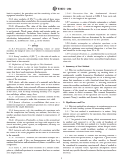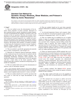 1.9 There are material-specific ASTM standards that cover the determination of resonant frequencies and elastic properties of specific materials by sonic resonance or by impulse excitation of vibration. Test Methods C215, C623, C74...