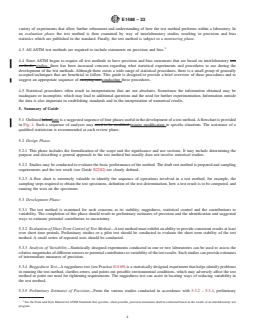4.4 Since ASTM began to require all test methods to have precision and bias statements that are based on interlaboratory studies, there has been increased concern regarding what statistical experiments and procedures to use during the development of the test methods. Although there exists a wide range of statistical procedures, there is a small group of generally accepted techniques that are beneficial to follow. This guide is designed to provide a brief overview of these procedures and to suggest an appropriate sequence of conducting these procedures.