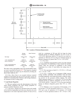 and the sheet edge, and spaced 150 6 15 mm [6 6 0.5 in.] apart. Refer to Fig. 1 for an illustration of the selvage thickness