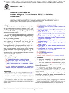ASTM C1841-23: Standard Specification for Interior Radiation Control Coating (IRCC) for Building Applications establishes essential requirements for classifying, composing, and testing IRCC products used in buildings. Interior radiation control coatings are specialty, low-emittance liquid coatings applied to interior surfaces in building environments to reduce radiant heat transfer. They play a crucial role in improving energy efficiency, occupant comfort, and, potentially, indoor air quality by controlling thermal radiation inside structures. This standard details application methods, property requirements, and testing protocols to ensure consistent performance and quality for both manufacturers and users.