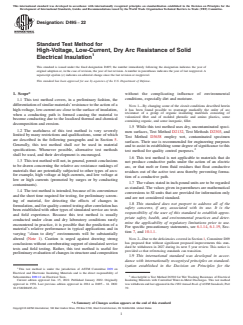 ASTM D495-22 - Standard Test Method for High-Voltage, Low-Current, Dry Arc Resistance of Solid Electrical Insulation