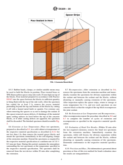 TFE-fluorocarbon spacer strip side walls 25 mm high on top of the blocks. Pour material prepared in accordance with Practice
