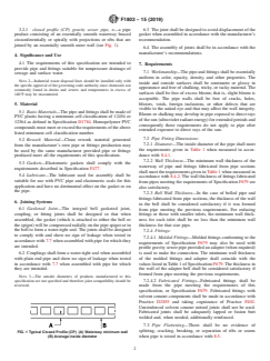 ASTM F1803-15(2019) is a technical specification published by ASTM International. Its full title is "Standard Specification for Poly (Vinyl Chloride)(PVC) Closed Profile Gravity Pipe and Fittings Based on Controlled Inside Diameter ". This standard covers: ABSTRACT This specification covers the requirements for poly(vinyl chloride) closed profile gravity sewer pipe and fittings with integral bell and elastomeric seal joints or plain end pipe with couplings based on a controlled inside diameter intended for non-pressure drainage of sewage and surface water. The integral bell gasketed joint, coupling, or fitting joints shall be designed in such a way that when assembled, the gasket (which is attached to either the bell or the spigot) will be compressed radially on the pipe spigot or in the bell to form a water-tight seal. The pipe and fittings shall comply with the following requirements: inside diameter, wall thickness, bell wall thickness, stiffness, flattening, impact strength, low head application of gasket, joint tightness, and resistance of exposed channels to infiltration, exfiltration, and sewer or drainage environments. Acetone immersion and air tests shall be performed to determine the degree of fusion of extruded plastic pipe and the air tightness or the minimum dwell period of the specimen, respectively. SCOPE 1.1 This specification covers requirements for poly(vinyl chloride) (PVC) closed profile sewer pipe and fittings with integral bell and elastomeric seal joints or plain end pipe with couplings in sizes (18 to 60 in.) based on a controlled inside diameter. 1.2 The values stated in inch-pound units are to be regarded as standard. The values given in parentheses are mathematical conversions to SI units that are provided for information only and are not considered standard. 1.3 The following safety hazard caveat pertains only to the test methods portion, Section 8, of this specification: This standard does not purport to address all of the safety concerns, if any, associated with its use. It is the responsibility of the user of this standard to establish appropriate safety, health, and environmental practices and determine the applicability of regulatory limitations prior to use. Note 1: Pipe and fittings produced to this specification should be installed in accordance with Practice D2321. 1.4 This international standard was developed in accordance with internationally recognized principles on standardization established in the Decision on Principles for the Development of International Standards, Guides and Recommendations issued by the World Trade Organization Technical Barriers to Trade (TBT) Committee.