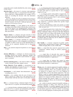 SCOPE 1.1 This terminology standard is a collective vocabulary relating to sampling and analysis of asbestos. As a convenience to general interest, it contains most of the standard terms, definitions, and nomenclature under the jurisdiction of Committee D22. 1.2 Many of the entries in this terminology are copied (with attribution) from the standards of origin referenced in Section 2. The standards of origin are noted in bold type at the right margin of the applicable definition. 1.3 Certain terms in the common language that comprise multiple concepts are included herein with the definition specific to standards and practices of Committee D22. 1.4 This international standard was developed in accordance with internationally recognized principles on standardization established in the Decision on Principles for the Development of International Standards, Guides and Recommendations issued by the World Trade Organization Technical Barriers to Trade (TBT) Committee.