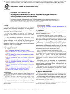 ASTM D4069-95(2020) - Standard Specification for Impregnated Activated Carbon Used to Remove Gaseous Radio-Iodines from Gas Streams
